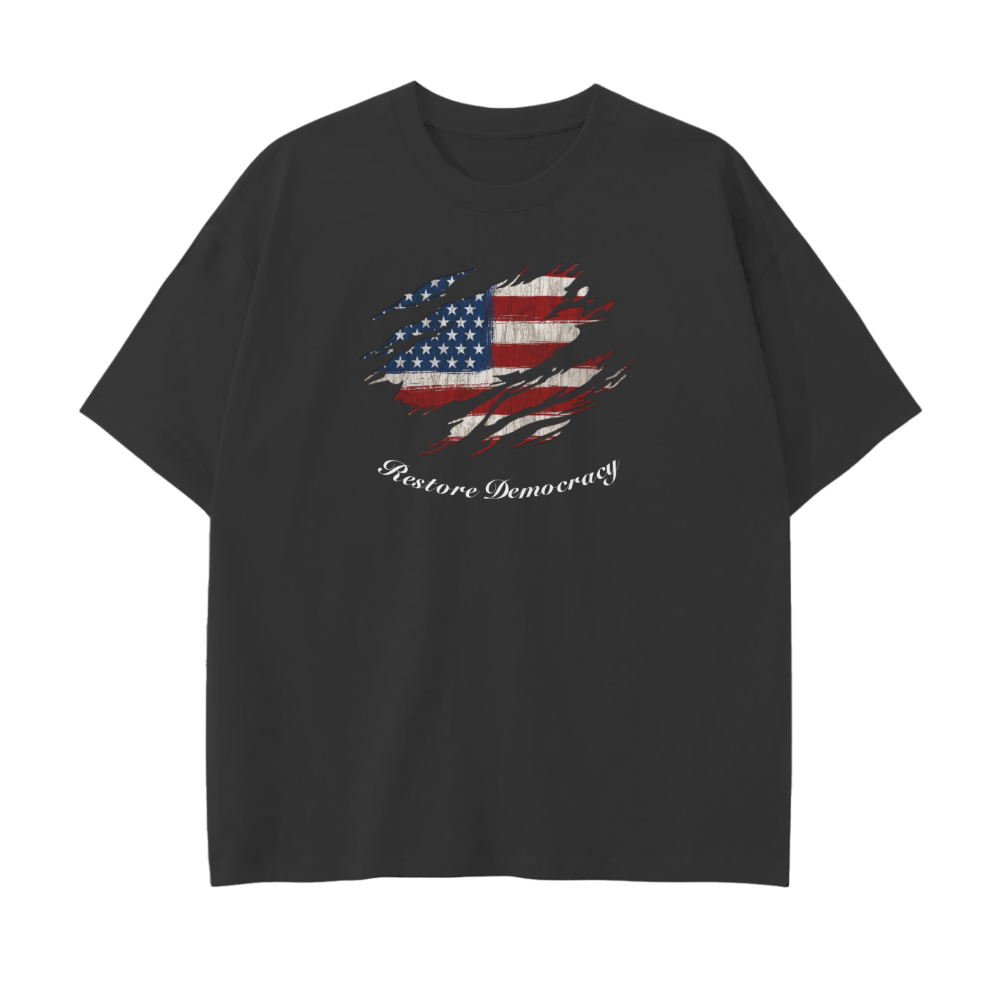 Drop Shoulder T-Shirt - 250 GSM-RESTORE DEMOCRACY